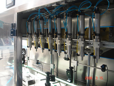 迅捷機械設(shè)備公司技術(shù)研發(fā)人員經(jīng)多次反復(fù)試驗,最終不負(fù)眾望,研發(fā)出一種新型升級版液體灌裝機的負(fù)壓灌裝頭,該負(fù)壓灌裝頭是在原負(fù)壓灌裝頭的基礎(chǔ)上,在灌裝管道內(nèi)設(shè)置了一套活動閥芯裝置,使液體灌裝過程中的滴漏現(xiàn)象大為減少;另外,被灌裝容器內(nèi)的液面高度可以保持一致,并且可以根據(jù)需要調(diào)節(jié)被灌裝容器內(nèi)的液面高度。
